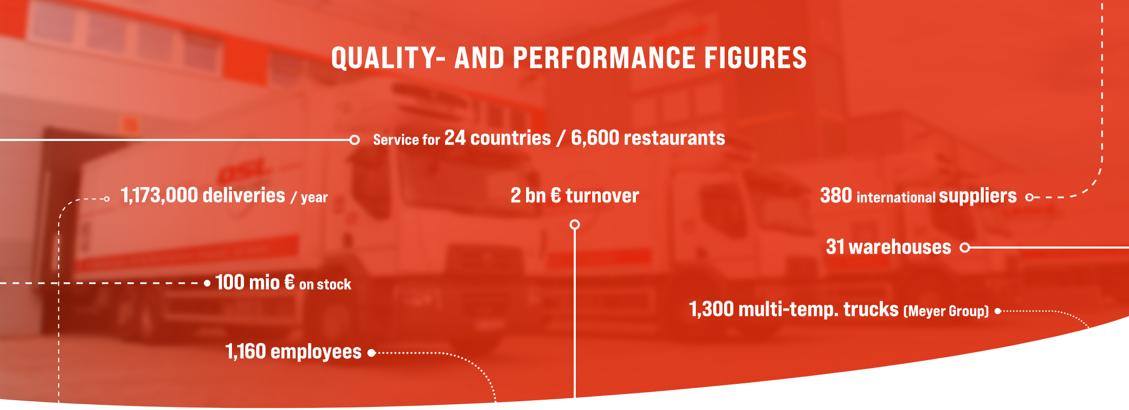 In a nutshell: At Quick Service Logistics (QSL) we are your full-service logistics provider for the demanding system-catering industry. As a commercial food logistics company, we handle your entire supply chain and are your one-stop shop for all cold-chain supplies. Whether unrefrigerated, refrigerated, frozen or all-of-the-above – we deliver what you need. We plan and monitor all logistics processes, organize operational purchasing, procure stocks, store, distribute, commission and – if desired – provide complete invoicing. We adapt our efficient and scalable supply chain management concepts to your requirements and can thus offer extensive added value in every respect.